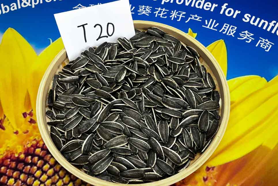 T20 SUNFLOWER SEEDS Sizes:170-180/180-190/190-200/200-210/210-220/230-240 Packaging:Plastic bags Net weight: 25 kg. Other format available on request. Shelf Life: 3 Years under recommended storage conditions. Harvesting period: September